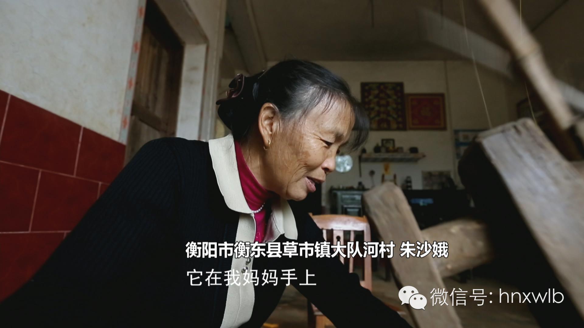 衡阳市衡东县草市镇大队河村 朱沙娥:从十二岁织布,今年六十二了,现在别人送线来,我就织布,一织,我就要发狠啦。
