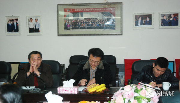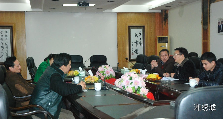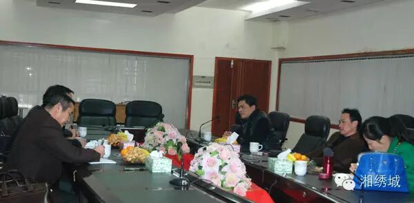 2014年12月1日上午,长沙市文化广电新闻出版副局长张明清,岳阳市文化广电新闻出版副局长刘光辉带领岳阳市文化产业考察团一行,来到全国文化产业示范基地—湖南湘绣城。对湘绣城文化产业的发展进行调研。湖南湘绣城王进斌汇报了湘绣城产业的发展情况,会上,长沙市文广新局和岳阳市文广新局就长沙市和岳阳市两市文化产业发展情况进行相互交流,并就长沙市和岳阳市两市文化产业发展资源整合,友好的交流合作达成共同意识。