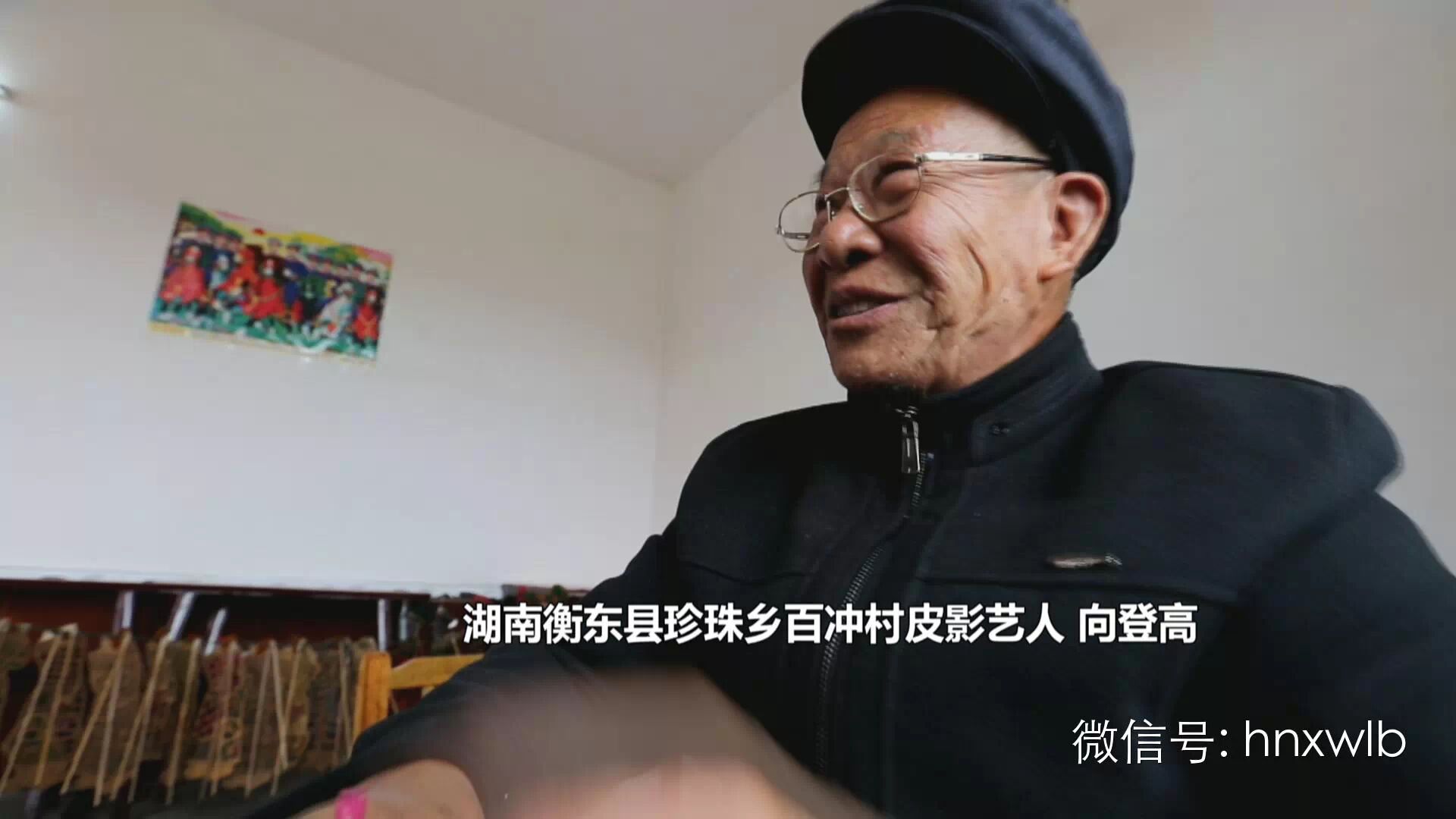 (衡阳衡东县珍珠乡百冲村皮影艺人 向登高)小时候就喜欢玩皮影,喜欢玩影子戏,读书时放在屉子里玩皮影,上课时间也玩。