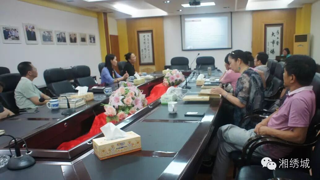2015年9月14日,江永县政协主席刘忠华,率领中国非物质文化遗产女书项目代表传承人胡欣;女书文化宣传大使、湘女楚韵女书艺术馆陈立新馆长,醴陵世界陶瓷艺术城邢长海总经理等一行到湘绣城交流访问。