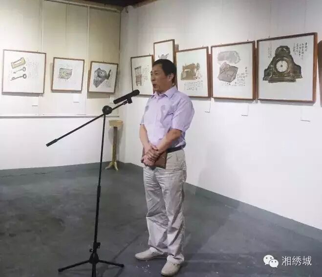 湖南省文联副主席曾应明说:“去年四月,我们在桃江听故事,看打铁、还有剪纸、弹棉花、 蓑衣、铜鎖、芭叶扇••••••这些渐行渐远的老家什,留在传说的故事中,留在老一辈的记忆里。不断智能化的现代人,现在仅能在博物馆的展览中;在山高水远的古村镇还能偶遇它的尊容。今天我们又到益阳看"记住乡愁"盛世芙蓉"逝去的家什"水墨系列画展!我们童年深处的记忆,被画展激活,我们的艺术灵感,来自浓烈的乡愁”。